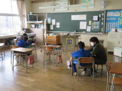 休み時間の6年生です。教室で思い思いに過ごしていました。小学校卒業まであとわずか。楽しい思い出をたくさん作ってほしいです。
