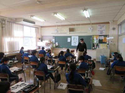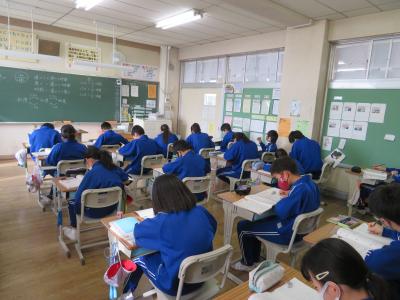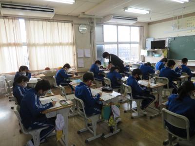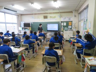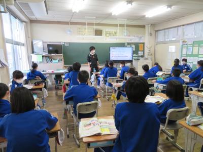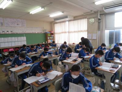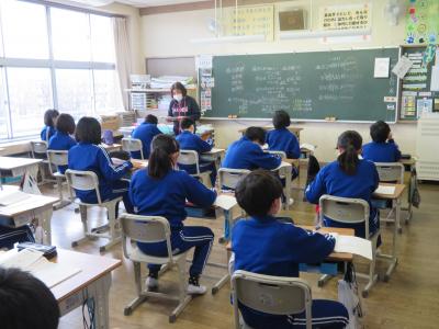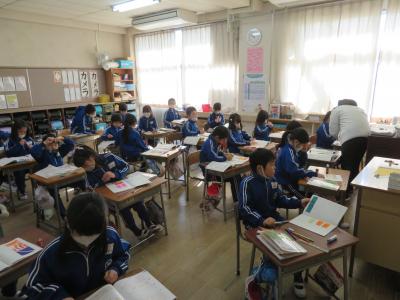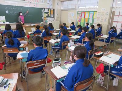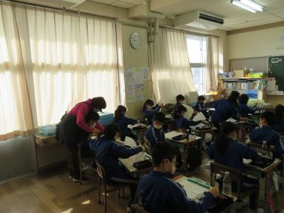 6年生の様子です。算数、書写、そして外国語の学習でした。黒板に目をやると、あるものが目に入りました。それは卒業まで日めくりカレンダーです。一日一日と小学校の日々が少なくなっていきます。楽しい思い出をこれからもたくさん作ってください。