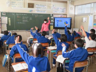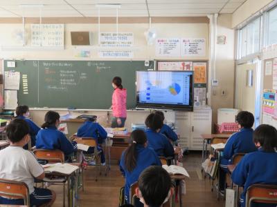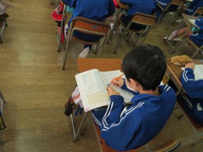5年生の様子です。算数でグラフの学習でした。ちょうど円グラフをかいているところでした。いろいろなグラフがあるので、まとめる内容によってどのグラフが適しているのかも学習していきます。