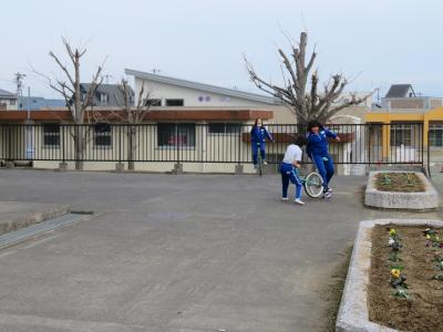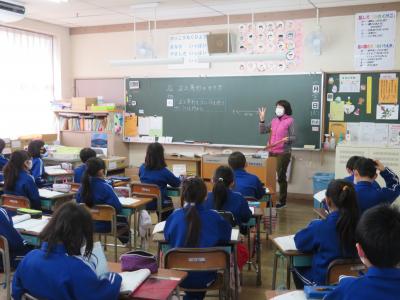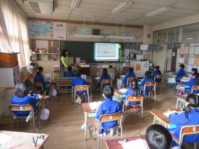 日差しが出てきて、久しぶりの「太陽」という感じです。4年生の様子です。外国語活動と体育の学習でした。