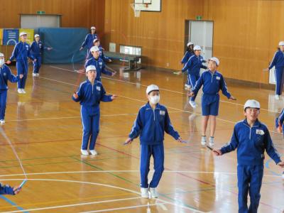 2年生が体育の学習をしていました。縄跳び運動で持久飛び、そして種目跳びに取り組んでいました。進級カードの目標達成に向かって、一生懸命に取り組んでいました。目指せ、縄跳び名人。
