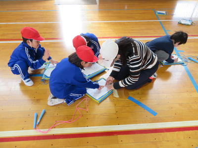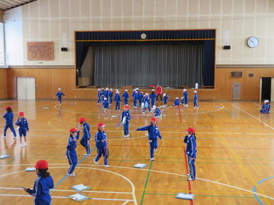 1年生が元気に体育の学習でなわ跳び運動に取り組んでいました。進級カードの目標に向かって、それぞれに取り組んでいました。体がほっこりです。