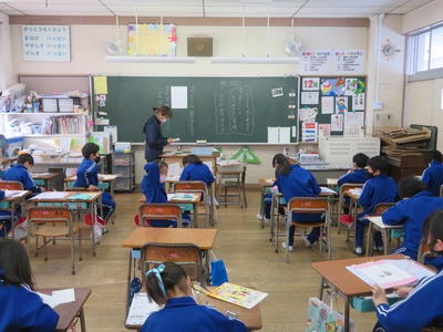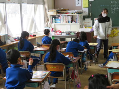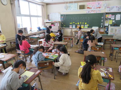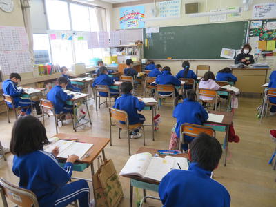 2校時目からの授業をのぞいてみました。3学期のめあてを書いていたり、新しく決めた係の仕事内容を書いたりしていました。