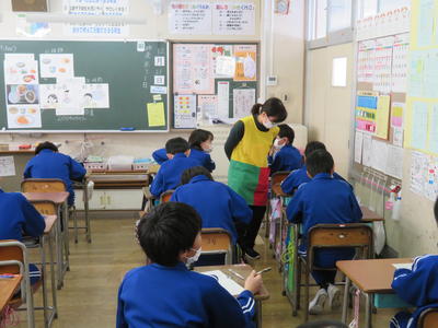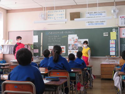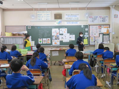 昨日に続いて5年生では、担任と栄養技師との授業が行われました。明日から冬休みなので、今日学習したことをぜひ実際の生活に生かしてみよう。
