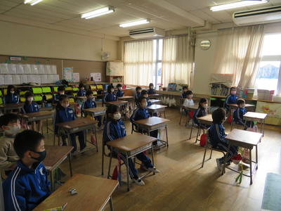 1校時目に、3学期の始業式を放送で行いました。4年生の児童が3学期に頑張ることについて発表しました。はっきりとした声で、とても上手に分かりやすく発表しました。マイクに向かって話すのは結構難しいのですが、素晴らしかったです。各学級では放送をきちんと聞くことができていました。