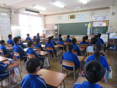 4時間目に、第2学期の終業式を行いました。感染防止のため放送で行いましたが、どの学級もきちんと聞くことができていました。2年生が児童代表として、2学期に頑張ったことなどについて発表しました。