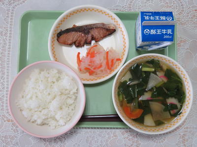 3学期最初の給食です。ぶりの照り焼き、紅白なます、七草すいとん でした。