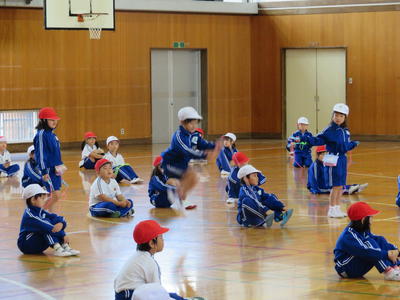 1年生は体育館で体育の学習でした。縄跳びのいろいろな跳び方をしていました。これから、たくさんの跳び方ができるように練習をしていこうね。