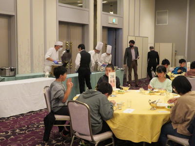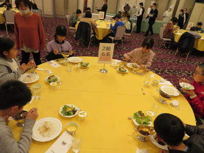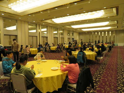 5日(木)の昼食です。会津ワシントンホテルの大きな会場を貸し切っての昼食です。何とその様子を福島テレビが取材に来ました。インタビューを受けた児童もいました。先生も受けていました。カレーの味は・・最高でした。