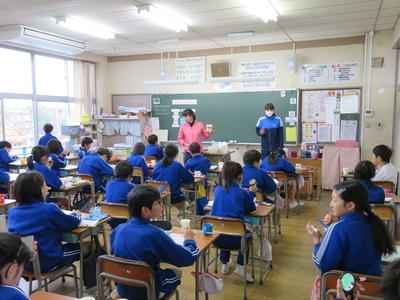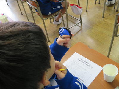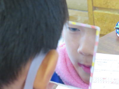 5年生は、担任と養護教諭での保健の学習をしていました。自分の歯の状況を確認するために、歯垢染め出しを行っていました。歯の色は・・・・・・え?真っ赤に?それは大変だ。しっかり歯磨きをしようね。