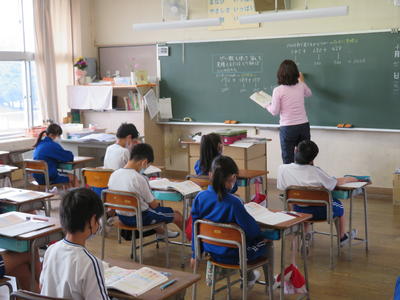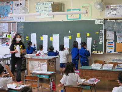 1年生の算数の授業の様子です。担任以外の先生も参観していたので、児童たちはちょっと緊張気味だったようです。でも、きちんと考えて、しっかりと発表することができていました。