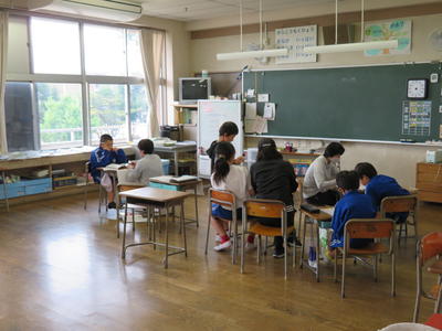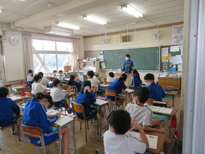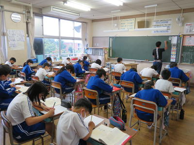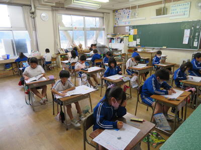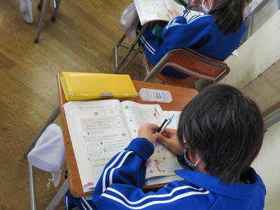 4年生は国語、算数、そして理科の学習でした。教材文から学んでの作文、計算の仕方の確認、そして体のつくりという内容に取り組んでいました。ノートもしっかりとした字で書かれていました。