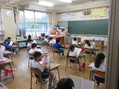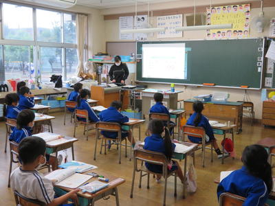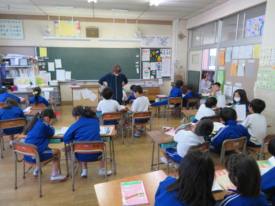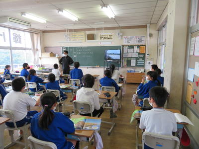 2年生も3学級、国語の授業でした。月曜日の1時間目は「国語」が定番なのかな?それとも単なる偶然?ノートに書かれてある字がとても丁寧でした。さすが2年生。素晴らしいです。