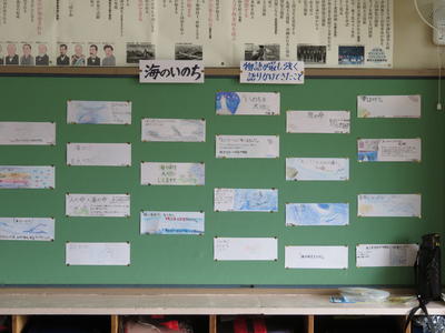 6年生の教室で素敵な掲示物を見つけました。国語で学習した「海のいのち」の感想をまとめたものでした。