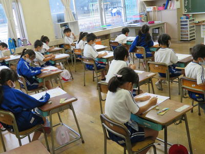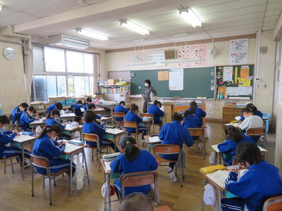 2年生の様子です。2年生は3学級ともに国語でした。まとめのテスト、読み取りなどをしていました。2年生になると、教材の文章が結構長くなるのですが、しっかりと学習していました。