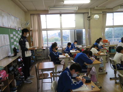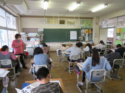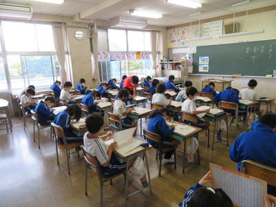5年生は、国語と算数のテストでした。国語は文章構成をとらえる内容でした。算数のテストは真剣に「し~~~ん」となって取り組んでいました。