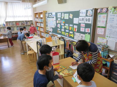 今日は司書の先生が来る日なので、図書室は児童でいっぱいでした。クイズも新しくなり、児童たちは一生懸命に取り組んでいました。分かるかな~~~~?