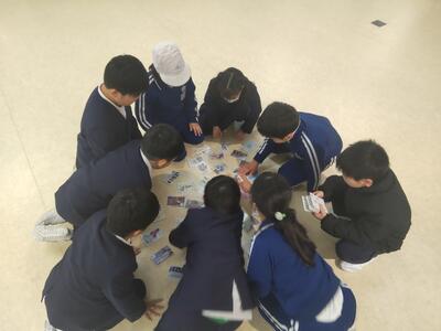本日昼休みに多目的ホールでは松っ子たちが真剣な表情で頭を突き合わせていました。