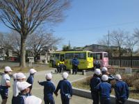 バスで松川小学校を後にする園児の皆さん。