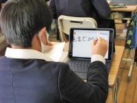 6年生の教室を訪問すると、PCタブレットを使って国語の授業を行っていました。