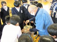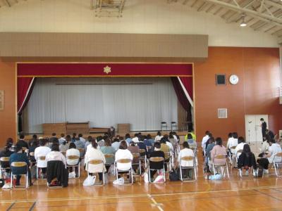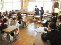 5年生は、体育館で「すわはらタイム・いっかん張り体験」の様子を観ていただきました。