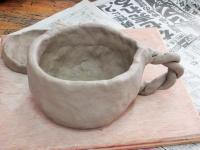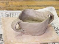 「ひも作り」の方法を教えていただき、子どもたちはそれぞれに「器」を作っていきます。