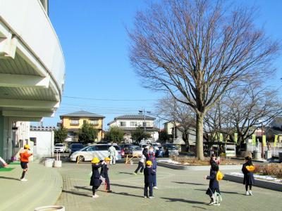 明るい冬空のもとで、1年生の子どもたちの元気な歓声が響いていました。