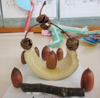 小鳥の森から持ってきていただいた,木の実や小枝,竹を使って自然アートを作ります。