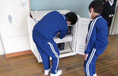 本校でも、各教室に学習用タブレットが搬入され、順次、子どもたちへの指導、授業での使用が始まっています。