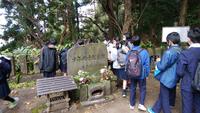 6年生が会津へ元気に出発しました。今日から2日間、会津の歴史や文化に触れる活動を行います。最初に白虎隊の悲劇の舞台である「飯盛山」を見学しました。