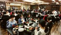 昨夜は、宿でゆっくりとおいしい夕食をとった子どもたち。今朝もそろって朝食を食べて、1日の開始です。しっかり食べて、今日も会津での時間を元気に有意義に過ごしてほしいと思います。