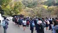 2020年10月30日 09時30分朝食をとった子どもたちは、準備をしてホテルを出発しました。温かく受け入れもてなしてくださったホテルの方にお礼をして、今日の活動スタートです。会津は、やや肌寒い天候ですが、色づく木々の葉が心を和ませてくれます。
