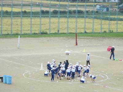 1年生は「玉入れ」をしています。 小学校に入学して初めての運動会となります。