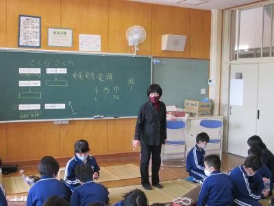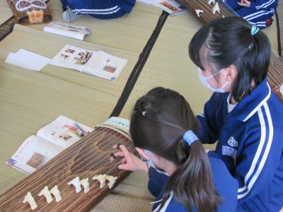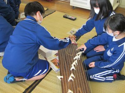 2021年2月12日 16時15分4年生の子どもたちが、音楽の授業で、琴を教えていただきました。