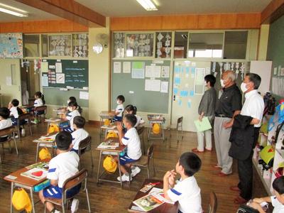 来校いただいた学校評議員の皆様には、早速、3時間目の授業を中心に子どもたちの様子をご覧いただきました。