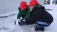 雪玉、雪合戦、ミニ雪だるまなど思い思いの方法で雪とふれあいました。