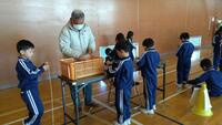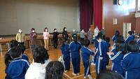 金谷川小、下川崎小の1年生も来校し、一緒に遊びました。おはじき、お手玉、あやとり、竹とんぼ、コマ回し、まりつき、けん玉、めんこをグループ毎に回り、様々な遊びに挑戦。