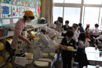 3枚目、4枚目の写真は1年生の給食のようすです。1年生にとって小学校はじめての給食です。給食を運ぶ姿を見ているとひやひやしてしまいましたが、全員無事に配膳が終わり、「いただきます!」でおいしそうに食べていました。