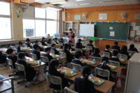 2枚目の写真は、4年生の外国語の授業のようすです。ジェシー先生の自己紹介に子どもたちは興味津々。英語をしっかりと聞き取ろうと真剣に耳を傾けていました。