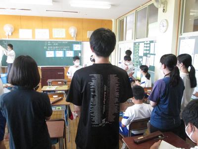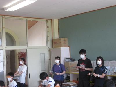 大学3年生の方、4年生の方と学年は違いますが、全員が松川小学校の卒業生で、子どもたちにとっては先輩にあたります。