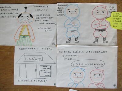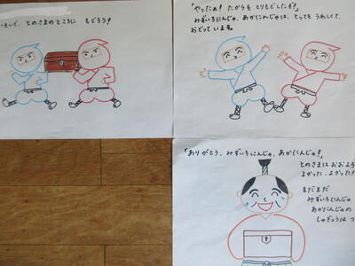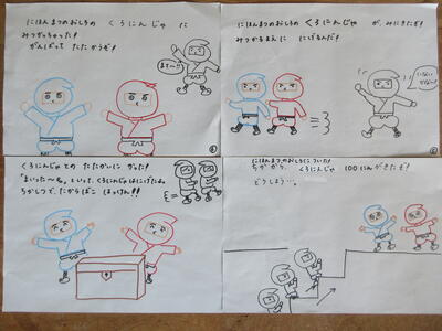 すみれさんは童謡「どんくりころころ」の続きのお話を考えました。