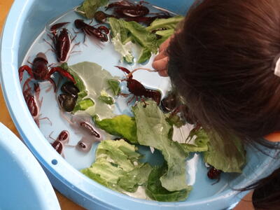 次に炊飯実験です。洗っていないお米と水に浸した後のお米の色や形の違いを観察して鍋にかけました。