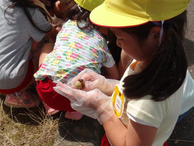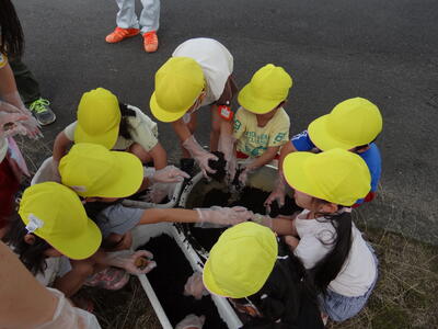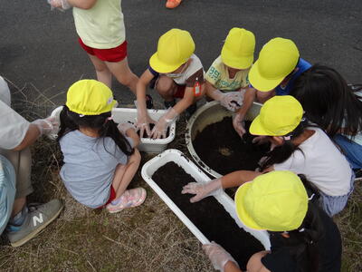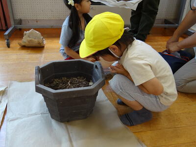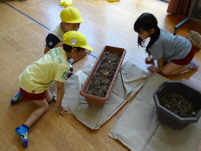 子どもたちは、いつカブトムシが出てくるのか、楽しみにしています。