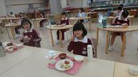 コロナウイルス感染対策として、自然の家名物のバイキング形式ではなく一人ひとりに配膳されたものを、席の間隔を取りながら一方向を向いて食べる「個食」スタイルなのが少し寂しい気もしますが仕方ありません。
