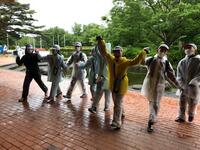 作品作りが早めに終わったので「かたらいの丘」までみんなで散歩をしました。
