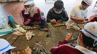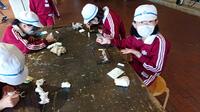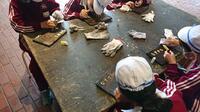 初めに自分で板を焼き、やけどに注意しながら取り出した板をこすって磨きます。