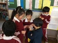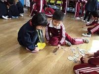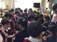 さくらんぼ保育園の年長組のお友達を小学校へ招待し,交流活動を行いました。体育館で「出会いの会」を行った後,全員でなかま集めゲームや昔あそびをしました。1年生は,少しお兄さん,お姉さんになって優しく遊び方を教えていました。1年生は,保育園のお友達とすぐになかよしになって,時間まで楽しく活動を繰り広げました。さくらんぼ保育園の年長のみなさん,一緒に遊んでくれてありがとう。4月,小学校でまたお会いしましょうね。