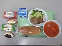 バターコッペパン 牛乳 もみの木ハンバーグ カラフルサラダ ミネストローネ クリスマスケーキ