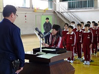 また,6年生に西部交番のお巡りさんから「家庭の交通安全推進委嘱状」が手渡されました。