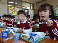 「いただきまーす」のあいさつで,おいしくいただきました。